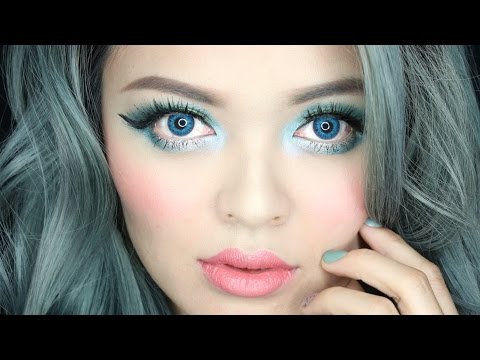 Next, to the eyes area. Apply this shimmery color to the entire eyelid and then blend it towards the brow bone.
