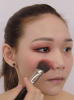 Apply the Yves Saint Laurent Fusion Ink Cushion Foundation No. 20 on the cheek first then blend out naturally